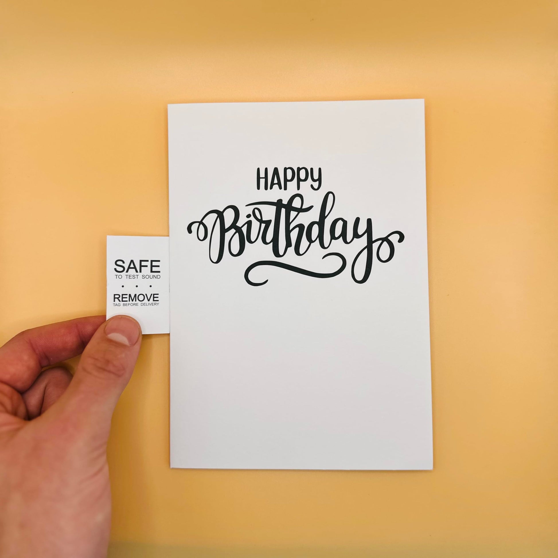 - SAFE TO SIGN - The card is safe to open and sign and personalize. Write your message, close the card, and remove the activation tab - next time the card is opened it will play endlessly.